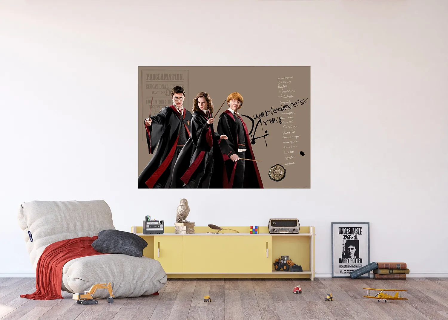 Explore a diverse array of designs inspired by the Harry Potter world, which are tailored to captivate any child. Crafted with love, each mural adds a sprinkle of magic to your child’s room. Alongside our Harry Potter wall murals, explore our range of textile products, wall borders, and stickers to complement the theme seamlessly.