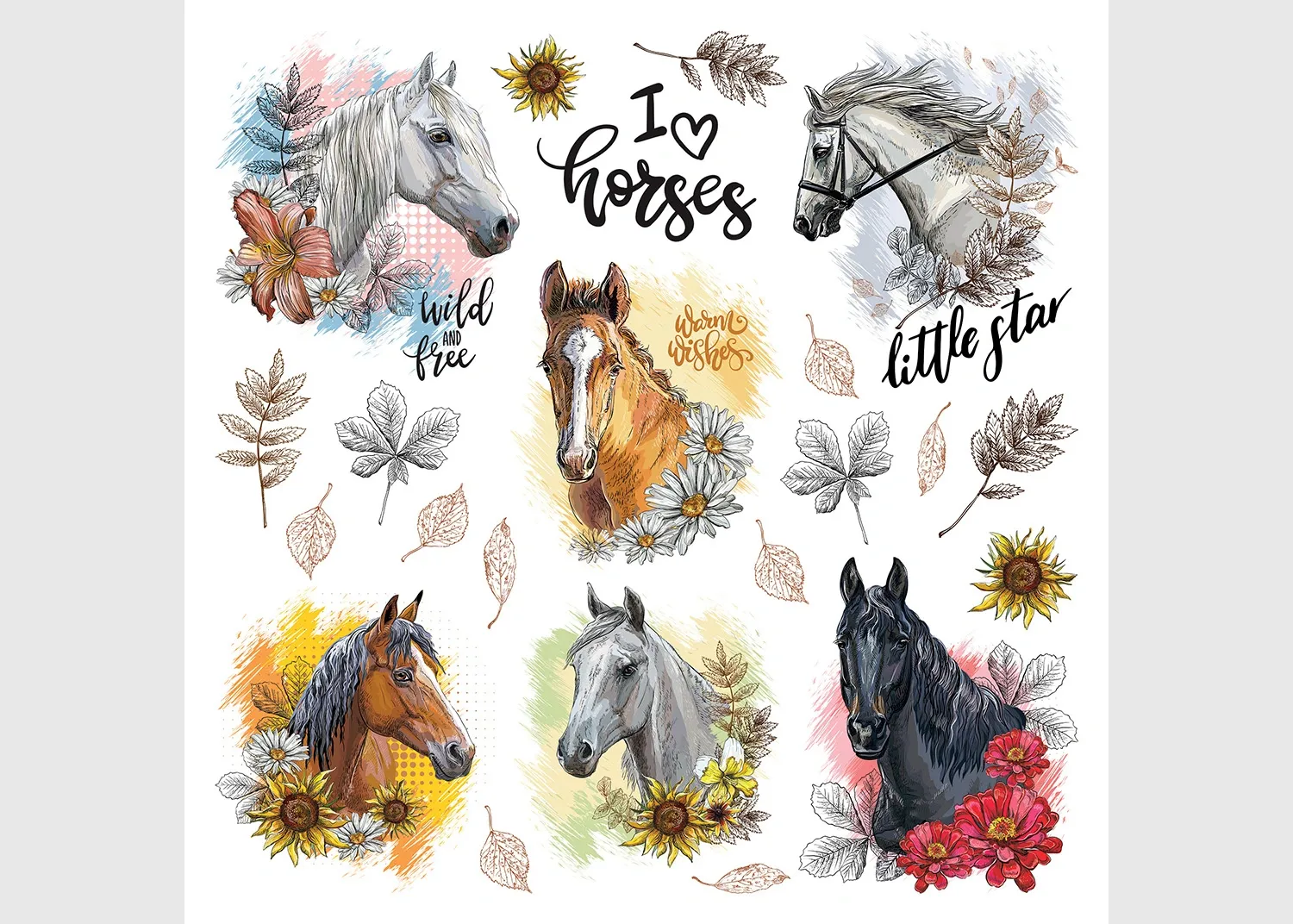 Wall Stickers Horses, 30 x 30 cm, SS 3887