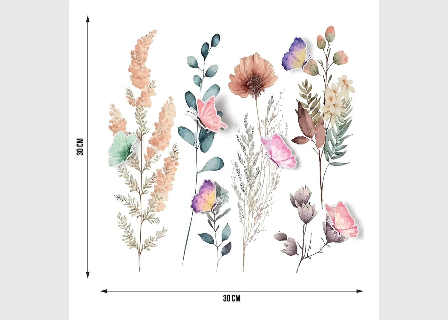 Wall Stickers Watercolor Flowers, 30 x 30 cm, SS 3921